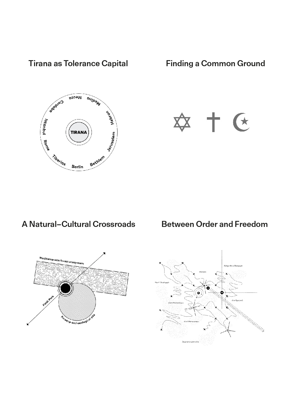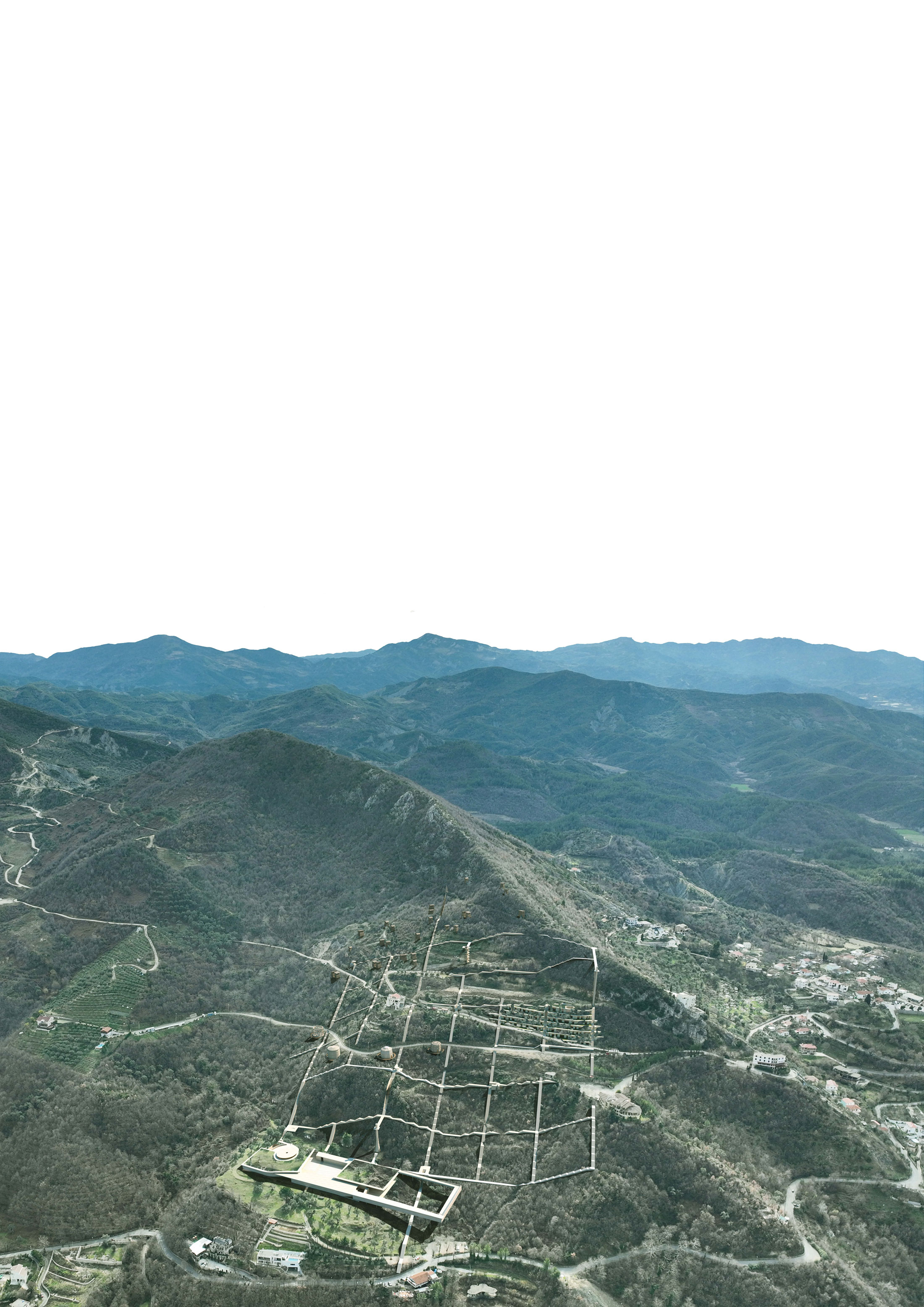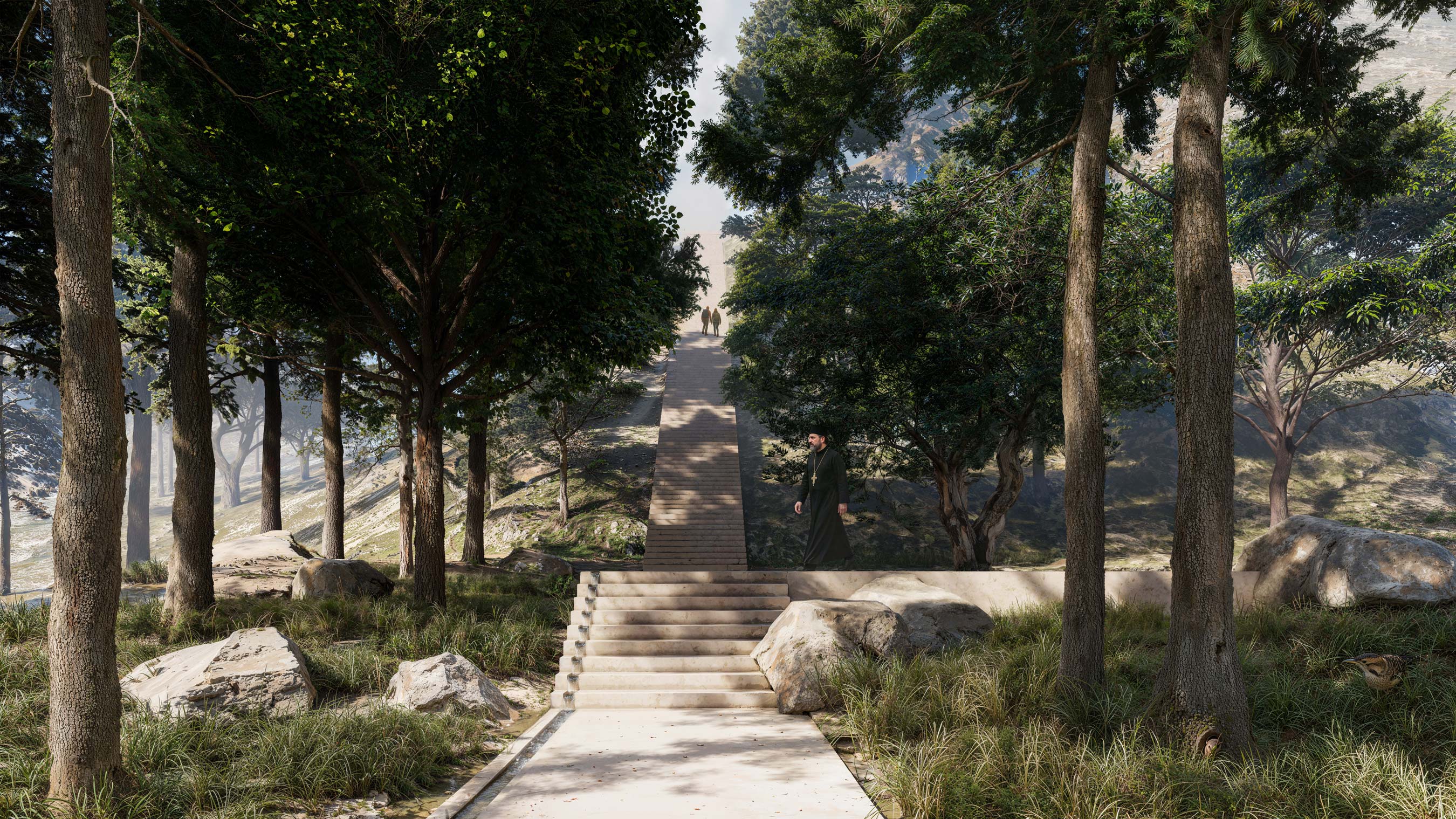 Faith Park is conceived as a landscape of shared spirituality — a park before anything else, where coexistence replaces singular belief. Rooted in Albania’s legacy of interreligious harmony, the project transforms a centuries-old culture of tolerance into space and matter, offering a terrain where diversity becomes dialogue. The project originates from an international design competition launched by AKPT and the Albanian Investment Corporation, inviting multidisciplinary teams to envision a new public landscape for Tirana dedicated to faith, memory, and coexistence. Developed through the collaboration of Openfabric, Park, AMDL Circle, Tharm architects, MIC-Hub, and Lachlan Turczan, the proposal was shortlisted among the five finalists. It reinterprets Tirana’s role as a Capital of Tolerance, giving physical form to a national tradition of peaceful coexistence among religions — a defining aspect of Albanian identity and pride. The masterplan unfolds across sixty hectares at the southern edge of Tirana, where the urban fabric dissolves into the Mediterranean landscape. Here, geometry and ecology merge to form a civic terrain that celebrates both difference and connection. A symbolic grid structures the park’s circulation, creating a network of paths, stairs, and intersections that organize the steep topography while framing twenty-eight perspectives and thirty-three points of encounter. Movement through the park becomes a meditative act, turning walking itself into a form of reflection and ritual. The design articulates a vertical narrative that connects earth and sky: from the mineral base of the Threshold Building to the religious and wellness structures at mid-slope, and the light, elevated eco-conscious accommodations that rest on stilts among the trees. Each level corresponds to a different intensity of experience — from the collective to the intimate, from community to solitude — inviting visitors to ascend through a spatial metaphor of spiritual growth. The Threshold marks the park’s gateway — an architectural and symbolic hinge where memory, dialogue, and welcome converge. It includes the Welcome Pavilion, the Museum of Remembrance, the Event Structure, the Restaurant, and the Faith Garden, each conceived as a space for encounter and contemplation. Carved into the mountain, the complex dissolves into the terrain, becoming both landscape and architecture, both entrance and destination. Across the site, a series of landscape follies punctuate the grid — small structures and clearings that host art installations, collective rituals, and performative acts. These installations translate water, sound, and light into immersive experiences, projecting fluid patterns that accompany the visitor’s ascent. Together with the landscape design, they balance order and freedom: a structured framework that organizes the natural slope while leaving room for spontaneity, growth, and interpretation. The masterplan also integrates an environmentally conscious mobility strategy, promoting accessibility through shuttles and slow-mobility systems that connect the park to the city of Tirana. This infrastructural layer reinforces the project’s civic dimension, making Faith Park not only a spiritual destination but also a sustainable public landscape. Ultimately, Faith Park proposes a new understanding of the sacred — one that is open, inclusive, and rooted in the land. By weaving together architecture, landscape, infrastructure, and art, the project becomes both a reflection of Albania’s multireligious identity and a vision for its future: a place where geometry and ecology, matter and spirit, earth and sky coexist in a continuous act of balance — a landscape of tolerance for the world to share.