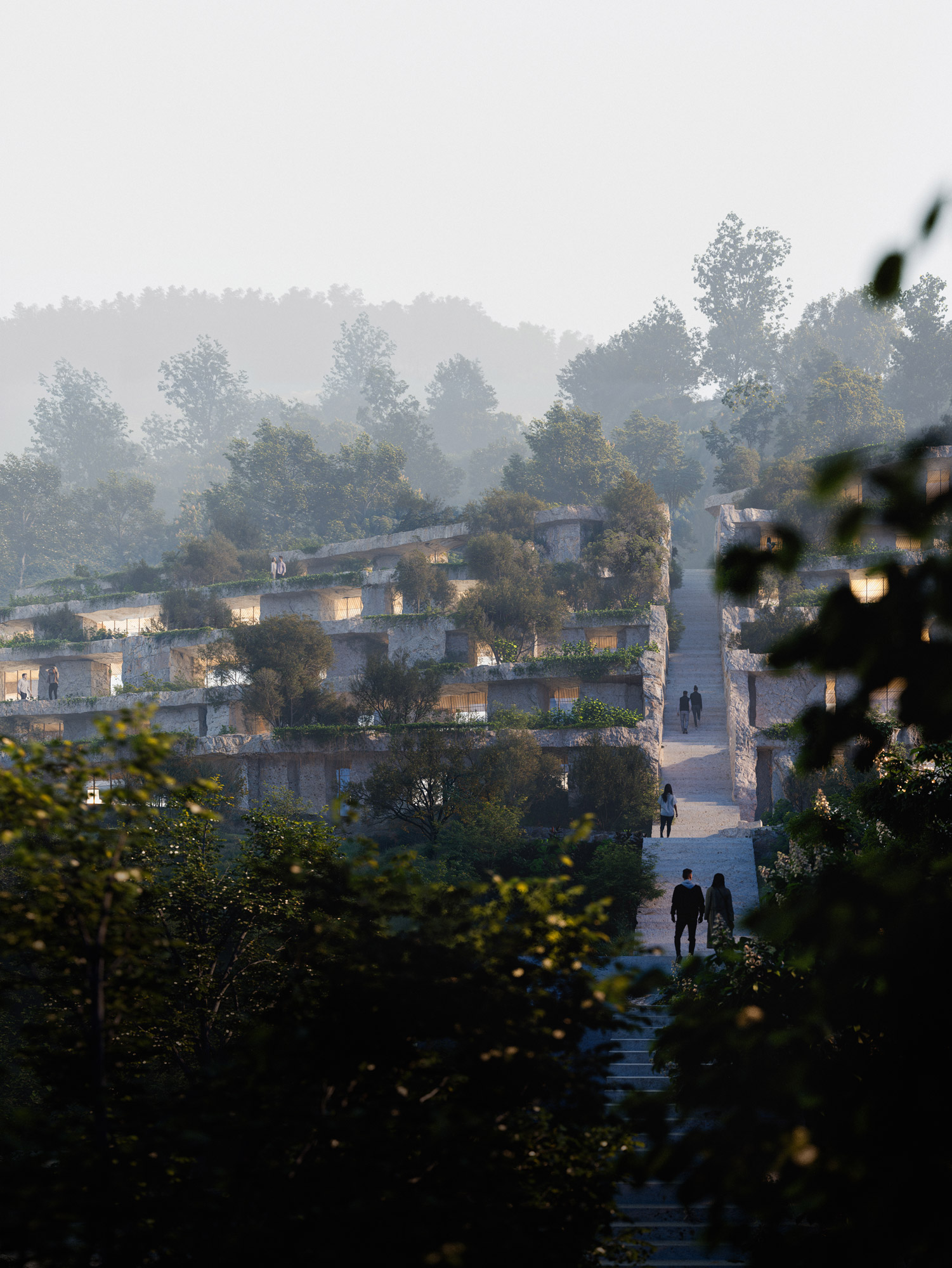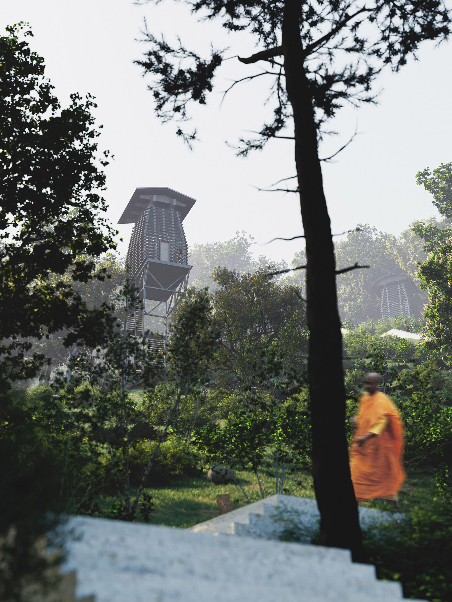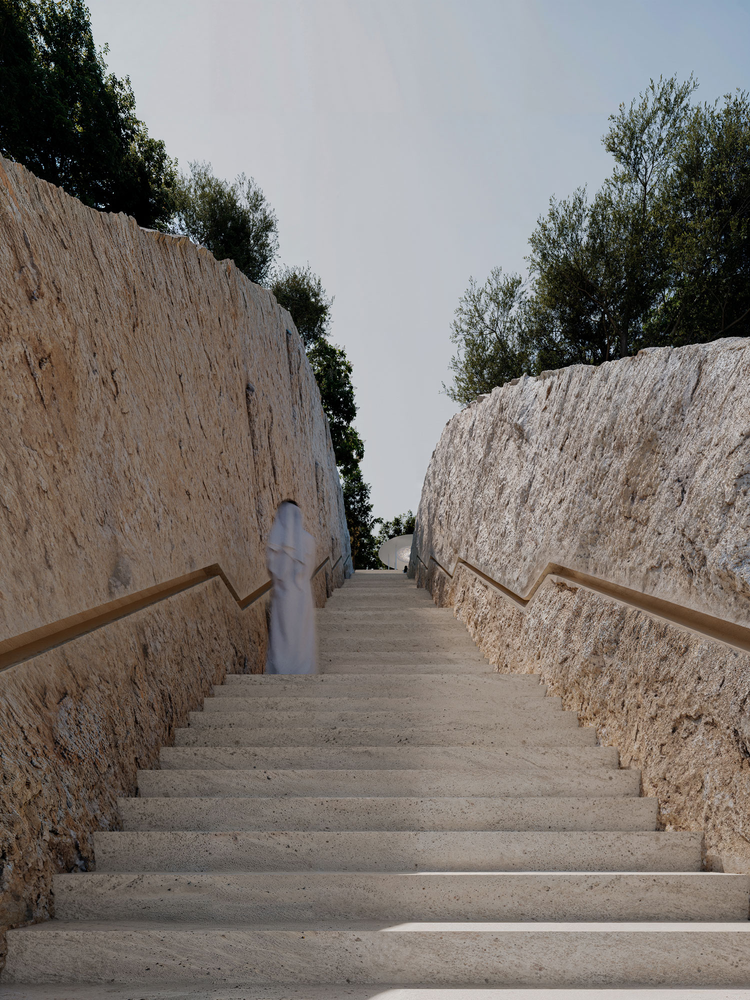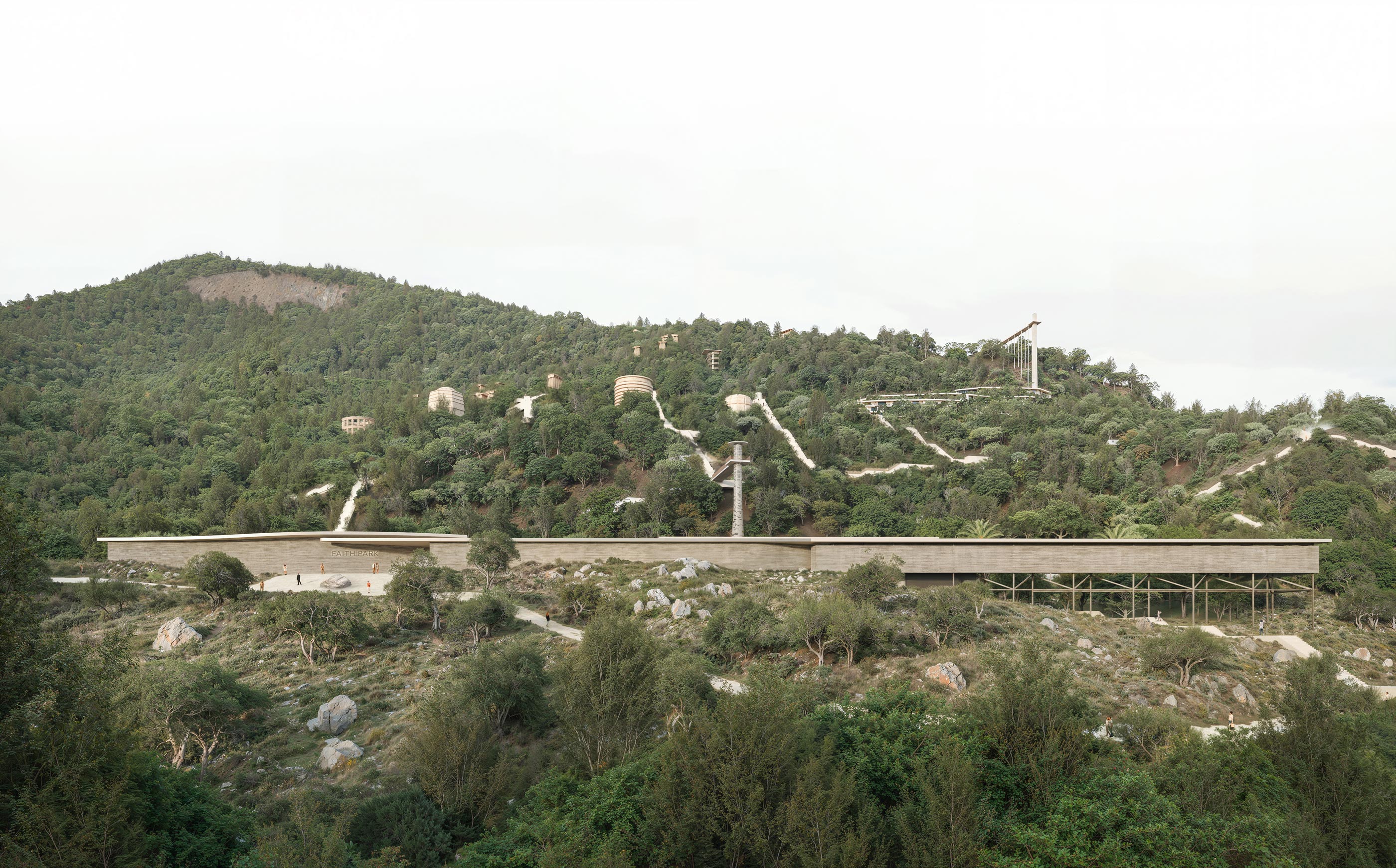 Faith Park is conceived as a landscape of shared spirituality — a park before anything else, where coexistence replaces singular belief. Rooted in Albania’s legacy of interreligious harmony, the project transforms a centuries-old culture of tolerance into space and matter, offering a terrain where diversity becomes dialogue. The project originates from an international design competition launched by AKPT and the Albanian Investment Corporation, inviting multidisciplinary teams to envision a new public landscape for Tirana dedicated to faith, memory, and coexistence. Developed through the collaboration of Openfabric, Park, AMDL Circle, Tharm architects, MIC-Hub, and Lachlan Turczan, the proposal was shortlisted among the five finalists. It reinterprets Tirana’s role as a Capital of Tolerance, giving physical form to a national tradition of peaceful coexistence among religions — a defining aspect of Albanian identity and pride. The masterplan unfolds across sixty hectares at the southern edge of Tirana, where the urban fabric dissolves into the Mediterranean landscape. Here, geometry and ecology merge to form a civic terrain that celebrates both difference and connection. A symbolic grid structures the park’s circulation, creating a network of paths, stairs, and intersections that organize the steep topography while framing twenty-eight perspectives and thirty-three points of encounter. Movement through the park becomes a meditative act, turning walking itself into a form of reflection and ritual. The design articulates a vertical narrative that connects earth and sky: from the mineral base of the Threshold Building to the religious and wellness structures at mid-slope, and the light, elevated eco-conscious accommodations that rest on stilts among the trees. Each level corresponds to a different intensity of experience — from the collective to the intimate, from community to solitude — inviting visitors to ascend through a spatial metaphor of spiritual growth. The Threshold marks the park’s gateway — an architectural and symbolic hinge where memory, dialogue, and welcome converge. It includes the Welcome Pavilion, the Museum of Remembrance, the Event Structure, the Restaurant, and the Faith Garden, each conceived as a space for encounter and contemplation. Carved into the mountain, the complex dissolves into the terrain, becoming both landscape and architecture, both entrance and destination. Across the site, a series of landscape follies punctuate the grid — small structures and clearings that host art installations, collective rituals, and performative acts. These installations translate water, sound, and light into immersive experiences, projecting fluid patterns that accompany the visitor’s ascent. Together with the landscape design, they balance order and freedom: a structured framework that organizes the natural slope while leaving room for spontaneity, growth, and interpretation. The masterplan also integrates an environmentally conscious mobility strategy, promoting accessibility through shuttles and slow-mobility systems that connect the park to the city of Tirana. This infrastructural layer reinforces the project’s civic dimension, making Faith Park not only a spiritual destination but also a sustainable public landscape. Ultimately, Faith Park proposes a new understanding of the sacred — one that is open, inclusive, and rooted in the land. By weaving together architecture, landscape, infrastructure, and art, the project becomes both a reflection of Albania’s multireligious identity and a vision for its future: a place where geometry and ecology, matter and spirit, earth and sky coexist in a continuous act of balance — a landscape of tolerance for the world to share.